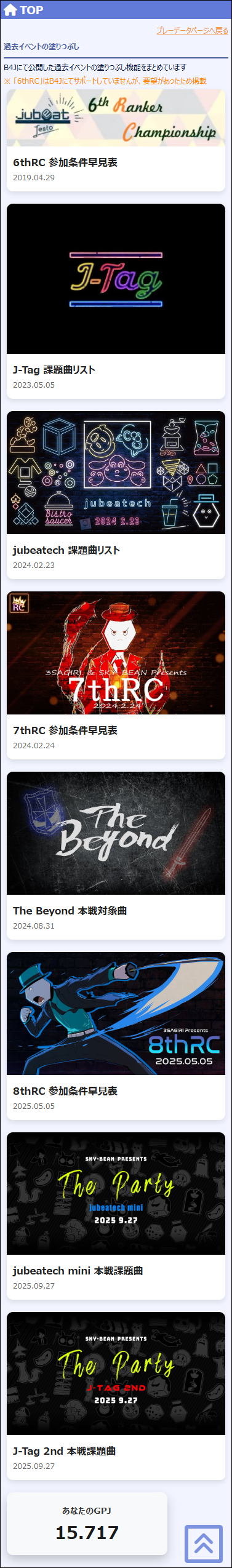 - 「6thRC 参加条件早見表」は、既に削除された譜面を対象外としています