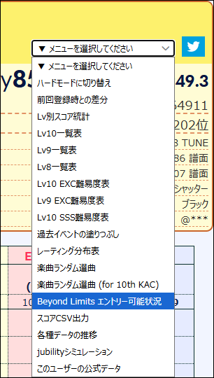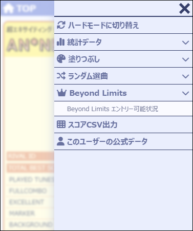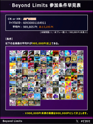 Beyond Limits対象曲の平均スコアを確認することができます。